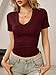 Womens Summer Sexy Short Sleeve Tshirt Tops Deep V Neck Shirts Casual Slim Fit Basic T-Shirt Tee A-Wine Red