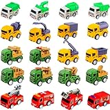 Restroma 20 Pack Mini Pull Back Vehicle Small Pullback Fire Truck Construction Vehicles Military Car Sanitation Toy Trucks Cars for Kids Classroom Prize Goodie Bags Fillers