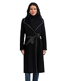 Tahari Women's Double-Faced Luxury Soft Wool Blend Long Line Wrap Coat, PU Binding Trim, Removable Belt, Black, XX-Small