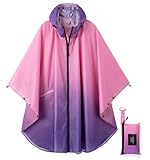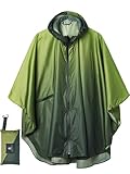 SaphiRose Unisex Rain Poncho Raincoat Hooded for Adults Women with Pockets (Gradient Dark Green)