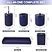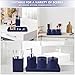 XLHOMO Resin Navy Blue Bathroom Accessories Set 5 Pcs, Lotion Soap Dispenser, Toothbrush Holder, Bathroom Tumbler, Qtip Holder and Vanity Tray, Bathroom Countertop Organizer Set for Modern Apartment
