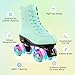 - ❤【Perfect Material】The surface of the roller skates is high-quality smooth and textured Faux Leather, and the material inside is comfortable white velvet cloth, paired with a porous design, making your feet feel comfortable and breathable during skating. We have incorporated super beautiful light green color into the design of roller skates, creating a stylish, cute, and elegant appearance.