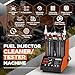 - 【Comprehensive Diagnostic and Testing Capabilities】 – Fuel injector tester and cleaner kit tests atomization, leakage, clogging, injection angle, and fuel injection volume uniformity across multiple speeds (idle/medium/high/acceleration) with 9 modes including leak tests, variable speed tests, and high-pressure sealing checks.