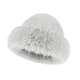 Yonchic Winter Soft Faux Fur Plush Bucket Hat, Cute Fuzzy Furry Fisherman Cap, Fashion Outdoor Thick Warm Sun Cap for Women Teens Girl (Gray)