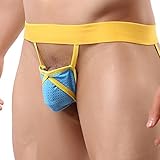 YiZYiF Men's Smooth Mesh X-String G-String Thin Open Back Bulge Pouch Underwear
