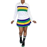 Costumes Women,2 Piece Striped,Long Sleeve Quarter Button Top with Pleated Skirt Set - for Workout White xx_l