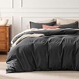 Bedsure 100% Washed Cotton Duvet Cover Queen Size - Charcoal Minimalist Cotton Duvet Cover Linen Like for All Seasons - GentleSoft™ Plain Simple Bedding (Charcoal, Queen, 90"x90")