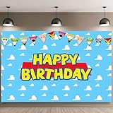5×3 ft Toy‑Inspired Blue Sky & White Clouds Backdrop Banner – Cartoon Playtime Celebration Party Decorations for Boys & Girls