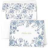AUDREE 50 Gold Foil Thank You Cards with Envelopes (4x6) - Elegant Blue Floral Thank You Cards with Matching Adhesive Envelopes - Perfect for Wedding, Bridal Showers, Baby Showers, All Occasion