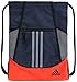 The Alliance Sport Sackpack is the perfect team sackpack. There is one large compartment with drawstring closure complete with air mesh ventilation. This sackpack has a front zippered valuables pocket that is lined with soft tricot fabric. There are also two side mesh pockets that are deep enough to fit water bottles, gym clothes, whatever you need to carry. The adidas embroidered brandmark and the screen-printed signature 3-Stripes complete the design of the Alliance Sport. Dimensions are 18.75" x 14".