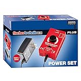 Small, compact geared motor in plastic casing with numerous attachment and connection possibilities. With many toothed gears, axles, driving gears and safety battery tray with pole-reversing switch.