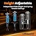 - 【Adjustable Height】 Thread-type ride height adjustment for 1-3 inches(does not keep the original ride height), allowing you to have a more aggressive stance. This design helps eliminate turning noise and also improves steering feel and response