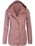 KOGMO Womens Zip up Military Anorak Safari Jacket with Hoodie-L-Mauve