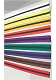 Our 100% cotton belts are strong and firm yet soft enough to tie easily. The belts measures 1 3/4 inches wide. Size 0 has a length of 82". Size 1 has a length of 91". Size 2 has a length of 95". Size 3 has a length of 102". Size 4 has a length of 108". Size 5 has a length of 111". Size 6 has a length of 119". Size 7 has a length of 127".