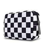 E-Tree Cute Small Makeup Bag, Cosmetic Toiletry Skin Care Make up Little Items Pouch for Purse,Zipper Mini Tech Charger Cable Electronic Organizer Case,Travel Accessories for Women Men Teen,Checkered