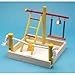The bird activity center is great fun and exercise for your parakeet or small bird. It helps relieve stress and boredom. It's durable and brightly colored wood will entertain your pet for hours and its easy to assemble, dimensions are 9-Inch by 9-Inch by 8-1/4-Inch.