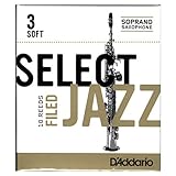 Rico Select Jazz Soprano Sax Reeds, Unfiled, Strength 3 Strength Medium, 10-pack