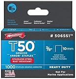 Arrow Fastener 506SS1 Heavy Duty T50 Stainless Steel Staples for Upholstery, Construction, Furniture, Crafts, 3/8-Inch Leg 3/8-Inch Crown Size,Length, 1000 Count (Pack of 1)