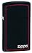 This Slim black matte lighter has the Zippo logo and red border around it. Comes packaged in an environment friendly gift box. For optimal performance, fill with Zippo premium lighter fluid.