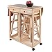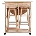 Create a beautiful little eating nook or food prep space with this Winsome Wood breakfast bar. The set includes two round stools and a bar with a foldable table leaf. Very efficient and space-saving, the stools nest under the table top for storage when not in use. A pair of built-in drawers hold utensils and linens, and a handy towel bar on the side let's you have linens at the ready. Casters enable the bar to roll like a cart for easy transport to where it's needed. Constructed of solid/composite wood, the bar/cart is versatile and attractive. Overall, it measures 31-1/2 inches wide by 29-5/8 inches deep by 33 inches high, and weighs approximately 58 pounds. Some easy assembly is required on arrival.