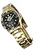 With the affordable gold-tone Invicta Pro Diver G3 automatic men's watch, you can still afford to buy flippers and a pair of goggles. It features a shock-resistant, 21-jewel automatic movement that will stand up to the rigors of your undersea adventures, and it's water resistant to 200 meters (660 feet). The watch case and stainless steel bracelet band are both plated with 23 karat yellow gold, and mix brushed and polished finishes. The black dial includes large Tritnite luminous markers and hands (with seconds hand) and a date window at 3 o'clock with a magnifier. Other features include a black-plated unidirectional rotating bezel with elapsed time markings, diver's buckle with safety clasp, and an anti-reflective mineral crystal. <p><b>Pro Diver Collection</b><p> Plunge into any horizon using the steadfast guidance of the Invicta Pro Diver. Stylishly classic, internal workings are forged with variations of either Swiss chronograph or 21-jewel automatic movements and willingly navigate in depths up to 300 meters. Built with confident prowess, the fortitude with which these timepieces function makes the Pro Diver the quintessential in performance.<p><i><b>Screw Down Crowns:</i></b> Many Invicta watches are equipped with a screw down crown to help prevent water infiltration. This is most common on our Diver models. In order to adjust the date and/or time on such a watch, you must first unscrew the crown before you can gently pull it out to its first or second click stop position. To do this, simply rotate the crown counterclockwise until it springs open. When you have finished setting the watch, the crown must then be pushed in and screwed back in tightly. <b>Not doing so will cancel the water resistance of the watch and will void all warranties from the manufacturer.</b> Overall, this process should not require a lot of effort or force.<p><em><strong>Automatic Watches</strong></em><br /><br /><strong>Automatic watches do<em> </em>not operate on batteries.</strong> Automatic watches are made up of about 130 or more parts that work together to tell time. Automatic movements mark the passage of time by a series of gear mechanisms, and are wound by the movement of your wrist as you wear it. The gear train then transmits the power to the escapement, which distributes the impulses, turning the balance wheel. The balance wheel is the time regulating organ of a mechanical watch, which vibrates on a spiral hairspring. Lengthening or shortening the balance spring makes the balance wheel go faster or slower to advance or retard the watch. The travel of the balance wheel from one extreme to the other and back again is called oscillation. Lastly, automatic movements come in different types, including movements that are Swiss-made, Japanese-made, and more.<br /><br />Also referred to as self-winding, watches with automatic movements utilize kinetic energy, the swinging of your arm, to provide energy to an oscillating rotor to keep the watch ticking. They're considered more satisfying to watch collectors (horologists) because of the engineering artistry that goes into the hundreds of parts that make up the movement. If you do not wear an automatic watch consistently (for about 8 to 12 hours a day), you can keep the watch powered with a watch winder (a great gift for collectors).<br /></p> </p>