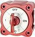 Mini Battery Switch, MFG# 6005, Red, 300A cont., 500A int., 48VDC. Positions: single-circuit on-off. 2.83"H x 2.83"W x 3.1"D. With removable "key" knob.