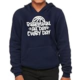 Basketball All Day Every Day Kids' Hoodie - Basketball Enthusiast Apparel - Gifts for Basketball Boy - Navy, S