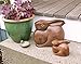- Cast Aluminum with Antique Bronze Finish: These bunny garden accents are specially crafted out of cast aluminum with antique bronze finish that will not rust. These statues are made to withstand most weather conditions, unlike breakable ceramic or glass, giving you extended years of use. Their earthy color makes them stand out in your garden without taking away from the surrounding natural beauty of your plantings.