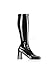Shaft Height: Approx. 16 3/4'' Tall. Heel Height: Approx. 3'' Tall. Stretch Patent or Stretch Pu upper. Manmade sole. It has a three inch heel, and has a great style.