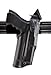 This holster with Automatic Locking System (ALS) builds on the foundation of the Self Locking System (SLS). It locks the weapon in all directions upon holstering, it's operable with the thumb, and the weapon can be drawn straight out of the holster with no twisting required. The mid-ride belt loop allows the holster to ride close to the body. The suede lining helps protects the gun's sights and finish. Durable leather look Safari Laminate construction with leather look finish.