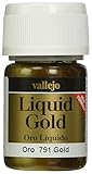 VAL70793 Liquid Rich Gold Alcohol Based Liquid Gold Series 35ml Vallejo<br /><br />Liquid Rich Gold Alcohol Based Liquid Gold Series 35ml<br /><br />Formulated with metallic pigments, soluble only in alcohol, these colors are infinitely more brilliant than their waterbased counterparts, and absolutely durable and dries fast.<br /><br />The colours can be mixed with one another and dry almost instantly. They can be overpainted or varnished almost immediately. The specific weight of the pigment causes the formation of sediment at the base of the container, and paint should be thoroughly shaken or stirred before use. If it were necessary to dilute the colours further, only 96 percent pure alcohol should be added to avoid oxidation.<br /><br />Liquid Gold cannot be mixed with water, to the contrary, the slightest contact with water will cause the pigments to rust within the jar. Brushes should be cleaned in alcohol only.<br /><br />Liquid Gold contains alcohol and is therefore flammable, but the product does not contain xylene or toluene, and is neither toxic nor harmful in normal use.