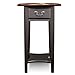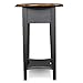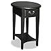 Oval tables ask for only a very small footprint but offer much in tabletop convenience. This sophisticated table features light, tapered posts with a convenient storage drawer. Scaled to fit most anywhere but generous in function, all solid wood construction and a hand applied rich Slate finish enhances the natural beauty of the wood grain and delivers exceptional durability. Simple, knock-down assembly ensures that setting up is a snap. Simply attach the legs, slide the drawer in, and you're done! The table takes up a small space with a 16W x 21"D x 24"H" footprint.