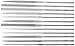 <div class="aplus"><p>The Nicholson needle file set is an assortment of 12 files in a variety of shapes that are 6-1/4" long and have double-cut grade 4 Swiss pattern teeth for use in making jewelry, dies, watches, and fine tools. The Swiss pattern teeth are double-cut for rapid material removal, with high precision for work on delicate or intricate parts. The files have a coarseness grade of 4 for a fine finish. The built-in handle of each file is round and knurled for a secure grip. The set comes in a vinyl pouch for storage.</p><p>Hand files are used to remove material and smooth and shape workpieces. They have forward-facing cutting teeth and cut when pushed over either a stationary or rotating workpiece. Single-cut teeth are single rows cut diagonally across the width of the file. Double-cut teeth have two sets of rows cut in opposite directions. American pattern files have three coarseness grades. Coarse, also known as bastard cut, is suitable for efficient, heavy material removal where finish is not a concern. Medium, also known as second cut, offers average material removal and finish quality. Fine, also known as smooth cut, provides the smoothest finish. Swiss pattern files have eight coarseness grades, from 00 (coarse), 0 (medium), and 1 to 6 (fine to finest), offering a smoother finish than equivalent American pattern files. For Swiss pattern files the length of the tool is the length of the blade, not counting the tang, which is the pointed end fitted for a handle; for American pattern files the length of the tool is its entire length, including the tang.</p><p>Nicholson manufactures hand tools and power tool accessories. The company is headquartered in Sparks, MD.</p><h5>What's in the Box?</h5><ul> <li>Barrette needle file, 6-1/4", #4 coarseness </li> <li>Equaling needle file, 6-1/4", #4 coarseness </li> <li>Rectangular (flat) needle file, 6-1/4", #4 coarseness </li> <li>Marking needle file, 6-1/4", #4 coarseness </li> <li>Joint needle file, 6-1/4", #4 coarseness </li> <li>Knife needle file, 6-1/4", #4 coarseness </li> <li>Half-round needle file, 6-1/4", #4 coarseness </li> <li>Round needle file, 6-1/4", #4 coarseness </li> <li>Slitting needle file, 6-1/4", #4 coarseness </li> <li>Square needle file, 6-1/4", #4 coarseness</li> <li>Triangular (three square) needle file, 6-1/4", #4 coarseness </li> <li>Crossing needle file, 6-1/4", #4 coarseness </li> <li>Vinyl storage pouch</li></ul></div>