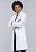 A unisex lab coat has side access openings, two roomy patch pockets, a chest pocket with a pencil stitch, and vented back. Center back length 40 inch