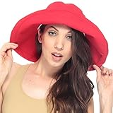 Simplicity Summer Solid Cotton Bucket Hat Caps with Big Fold-Up Brim, Red