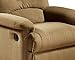 The Arcadia Recliners Collection Features light brown microfiber upholstered and overstuffed fiber fill on arms. Fully reclining seat with footrest. This graceful and practical recliner will greatly enhance your living room. Also available in beige, sage and chocolate.