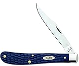 This Case Texas Toothpick is a part of the American Workman Family. This Family honors the artisans who have hand-crafted Case knives in Bradford, Pennsylvania since 1889. This durable folding knife features a jigged blue synthetic handle and a long clip blade. The Clip blade is commonly used as a multi-purpose blade and preferred for detail work. This durable folding knife is constructed with Case As-Ground Tru-Sharp Stainless Steel which is a special high-carbon steel that helps the blades hold an edge longer than conventional steel. It also offers extraordinary blade strength and corrosion resistance. The Small Texas Toothpick has a small design and fits well in a pocket or purse. This pocket knife is suitable for everyday demands, the outdoors, or hiking. Comes conveniently packaged in a box. Proudly made in the USA, hand-crafted by skilled artisans.