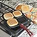 This heavy cast aluminum waffle griddle ensures even heating. Make thin, light 3 inch waffle shaped pancakes. Perfect for making fresh or freezing to eat later. Use your favorite recipe or the one included with the pan. Durable non-stick finish for easy clean up. Made in USA with imported handle.