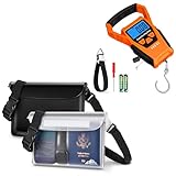 HEETA Waterproof Pouch Bag, Screen Touch Sensitive (Black & White) Bundled with Waterproof Fish Scale Digital with Backlit LCD Display, 2 AAA Batteries Included (Orange)