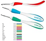 Beautifully balanced handles rest perfectly in your hand as addi's Turbo hook glides in and out of each stitch. With addi Swing Hooks you can say good-bye to cramped fingers forever. Color-coded to make reaching for just the right size even easier. 6" long.