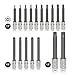 Premium S2 steel bits provide optimal strength and durability to unfasten intractable screws and bit ends are sized for precise fitting. Sockets are made of enduring Chrome-Vanadium. Set Includes: 14-piece Deep External Torx socket: 5-pc. 1/4 in. drive: E4, E5, E6, E7, E8 5-pc. 3/8 in. drive: E10, E11, E12, E14, E16 4-pc. 1/2 in. drive: E18, E20, E22, E24 17-piece Torx Bit Socket: 10-pc. 1/4 in. drive (2-3/4 inch): T6, T7, T8, T9, T10, T15, T20, T25, T27, T30 5-pc. 3/8 in. drive (4-3/8 inch): T40, T45, T47, T50, T55 2-pc. 1/2 in. drive (5-1/2 inch): T60, T70 17-piece Torx Tamper Bit Socket: 10-pc. 1/4 in. drive (2-3/4 inch): TT6, TT7, TT8, TT9, TT10, TT15, TT20, TT25, TT27, TT30 5-pc. 3/8 in. drive (4-3/8 inch): TT40, TT45, TT47, TT50, TT55 2-pc. 1/2 in. drive (5-1/2 inch): TT60, TT70 12-piece Torx Plus bit socket: 7-pc. 1/4 in. drive (2-3/4 inch): TP8, TP10, TP15, TP20, TP25, TP27, TP30 4-pc. 3/8 in. drive (4-3/8 inch): TP40, TP45, TP47, TP50, TP55 1-pc. 1/2 in. drive (5-1/2 inch): TP60 Storage and carrying case included.