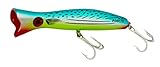 The Roosta is designed to be used as a straight retrieve popper and a blooper. When retrieved, the action can be changed by the level of the rod tip. Keeping the tip close to the water creates a massive bubble stream as the lure tracks through the water with a slight wiggling action. This can be particularly useful in rough surface conditions where the lure needs to be kept in the water to minimize cart wheeling. The low splash, high bubble retrieve can also be useful for fish that are shy of large splashes. When casting poppers always allow a few seconds after the lures has hit the water before you commence your retrieve. This allows the lure to find its correct buoyancy and resting position in the water prior to retrieving. Commencing the retrieve the moment the lure hits the water often finds the lure not behaving correctly for the first couple of meters. Often this is the critical strike zone. Code: RP135, Size 135mm, Weight 49gm, Size #2/0 Mustad 3xx Treble Hook, Surface Swimming.