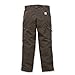 Carhartt's cotton ripstop pant is built to stand up to tough days at the jobsite or the campsite. The 9.25-ounce, 100% cotton ripstop fabric is specially designed to resist rips and tears. There's rugged, double-front construction, plus the added durability of Cordura(R)-lined front-ledge and back pockets. Carry what you need in two large cargo pockets with flaps and snap closures, as well as multiple utility pockets. As the day wears on, you'll appreciate the pant's gusseted crotch that enhances comfort.