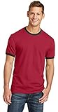 4.2 oz., 52% combed and ringspun cotton, 48% polyester; 30 singles; retail fit; contrast ringer binding on sleeves and neck line; sideseamed; White/Black is 100% combed and ringspun cotton;