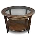 Leick Home Sheldon Coffee Table, Solid Wood, Round, with Glass Top and Shelf, Chocolate Oak, 10037