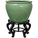 Glazed in a fine, pale jade celadon green, it's both a beautiful accent to your décor and a useful extra-large planter. Finding authentic celadon glazed ceramics can be difficult in the U.S., as is finding fishbowls as large as this one and stands large enough to display them.