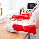 KINGFINGER Rubber Latex Gloves,Flock Lining Household Gloves (Red, Large)