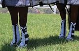 Professional's Choice Fly Boots Made out of a heavy-duty, uniquely breathable, and UV-protective nylon mesh that resists stains and wrinkles. The contoured shape and three adjustable hook and loop straps ensure a perfect fit without over-tightening. The nylon binding and reinforced webbing down the back keep the boot from sliding down the horse's leg while fleece lining ensures optimal comfort. Polyester rip-stop technology makes mesh extremely tough and durable. Features: 4-pack Contoured shape Hook and loop straps Fleece lining Rip-stop technology 30-day money-back guarantee Item Specifications: Measurements (approximate) : Horse: Front: 12.5" tall, circumference 11" Rear: 13" tall, circumference 11.5" Large: Front: 13.5" tall, circumference 12" Rear: 14.5" tall, circumference 12.5" Color: Gray/Black Material: Nylon/Mesh
