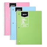 Amazon Basics College Ruled Spiral Notebook, For Work and School, 70 Sheets, 8" x 10.5", 3 pack, Assorted Pastel Solid Colors