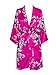 Old Shanghai Women's Kimono Short Robe - Peacock & Blossoms - Fuchsia (On-Seam Pocket)